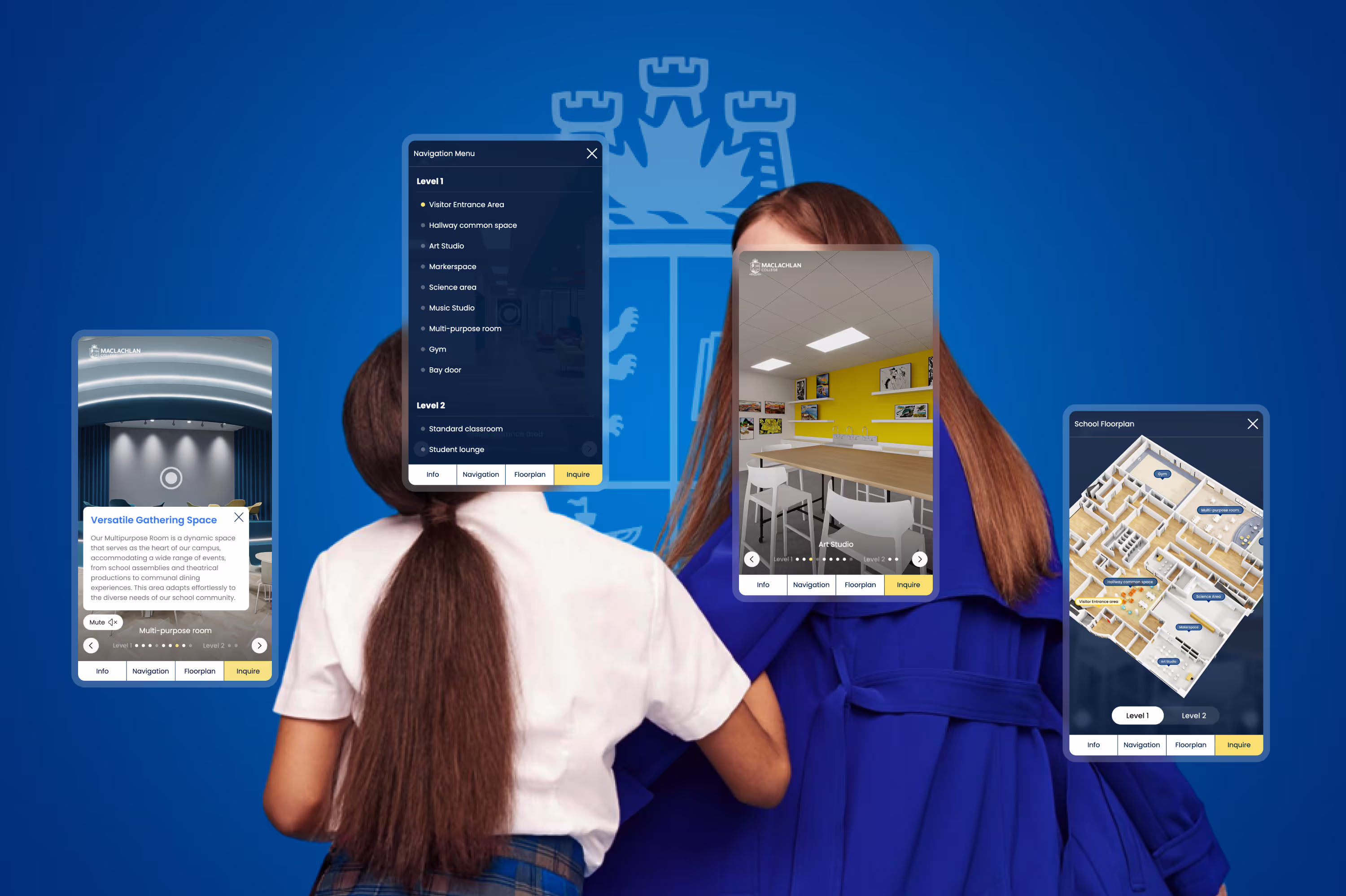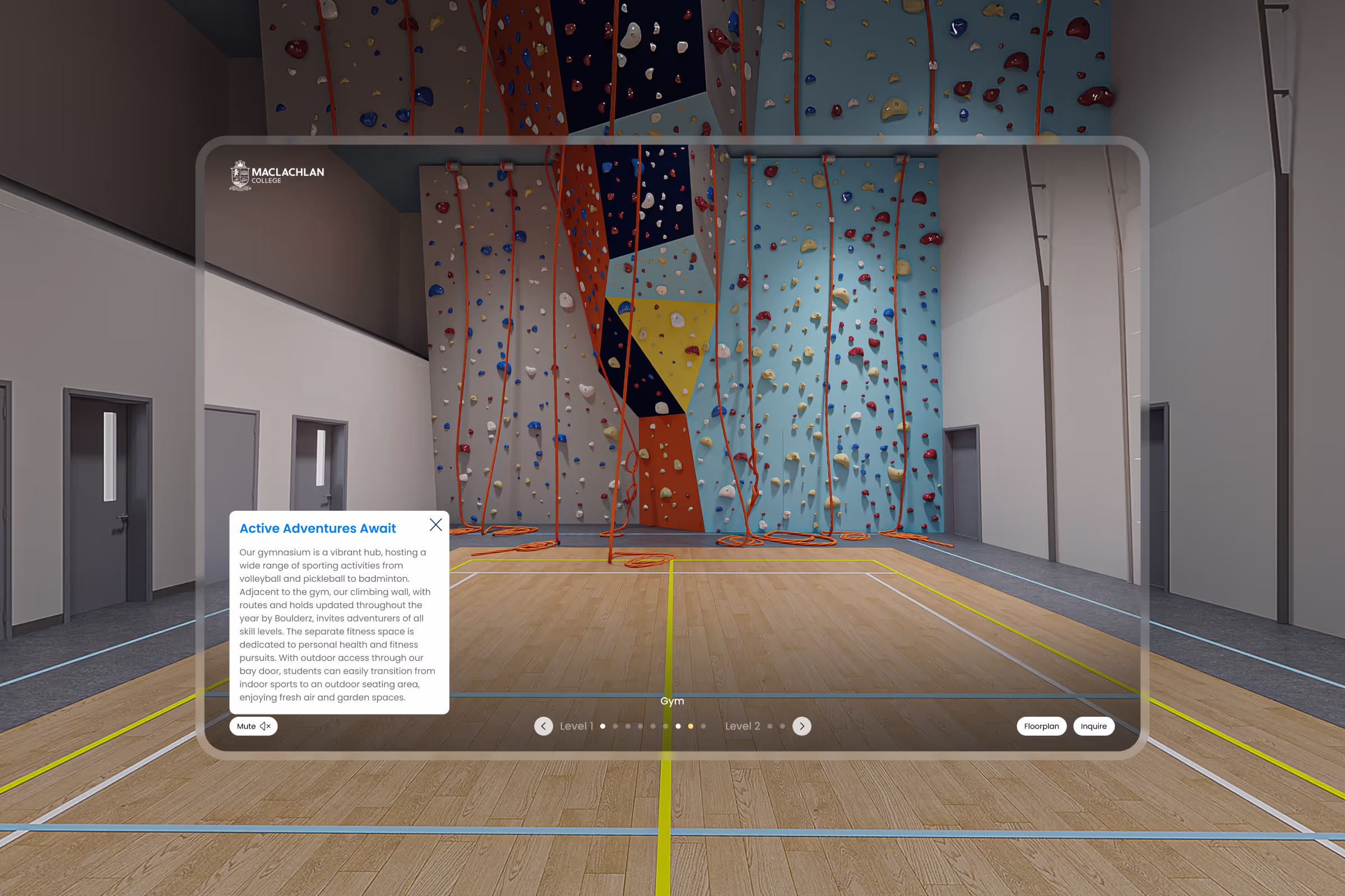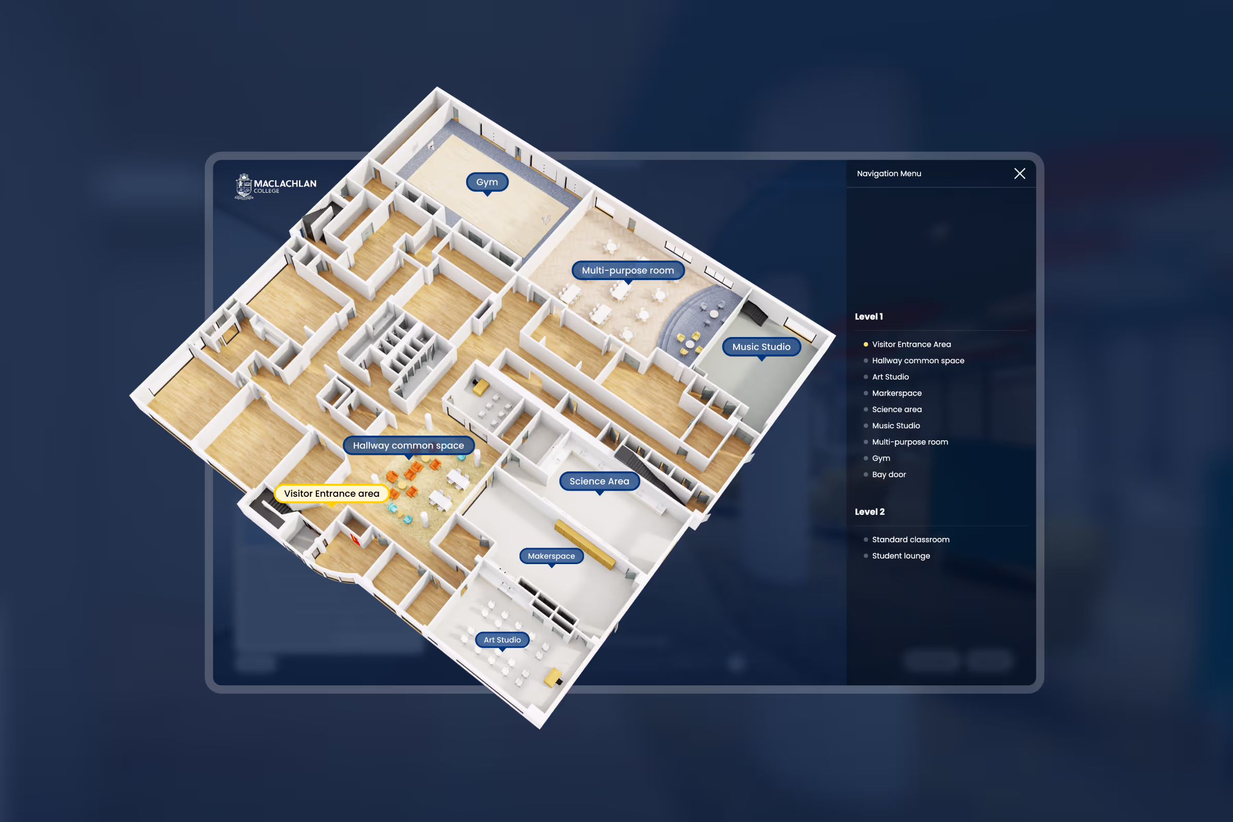 The result was a fully interactive 360° virtual tour built to guide users through key areas of the campus—from classrooms and labs to community spaces—allowing them to experience the environment at their own pace. Clear navigation, layered hotspots, and contextual information help demystify the school’s offerings and create a more personal connection. The tour was designed to be device-responsive and user-friendly, serving as a practical recruitment asset for both local and international audiences.